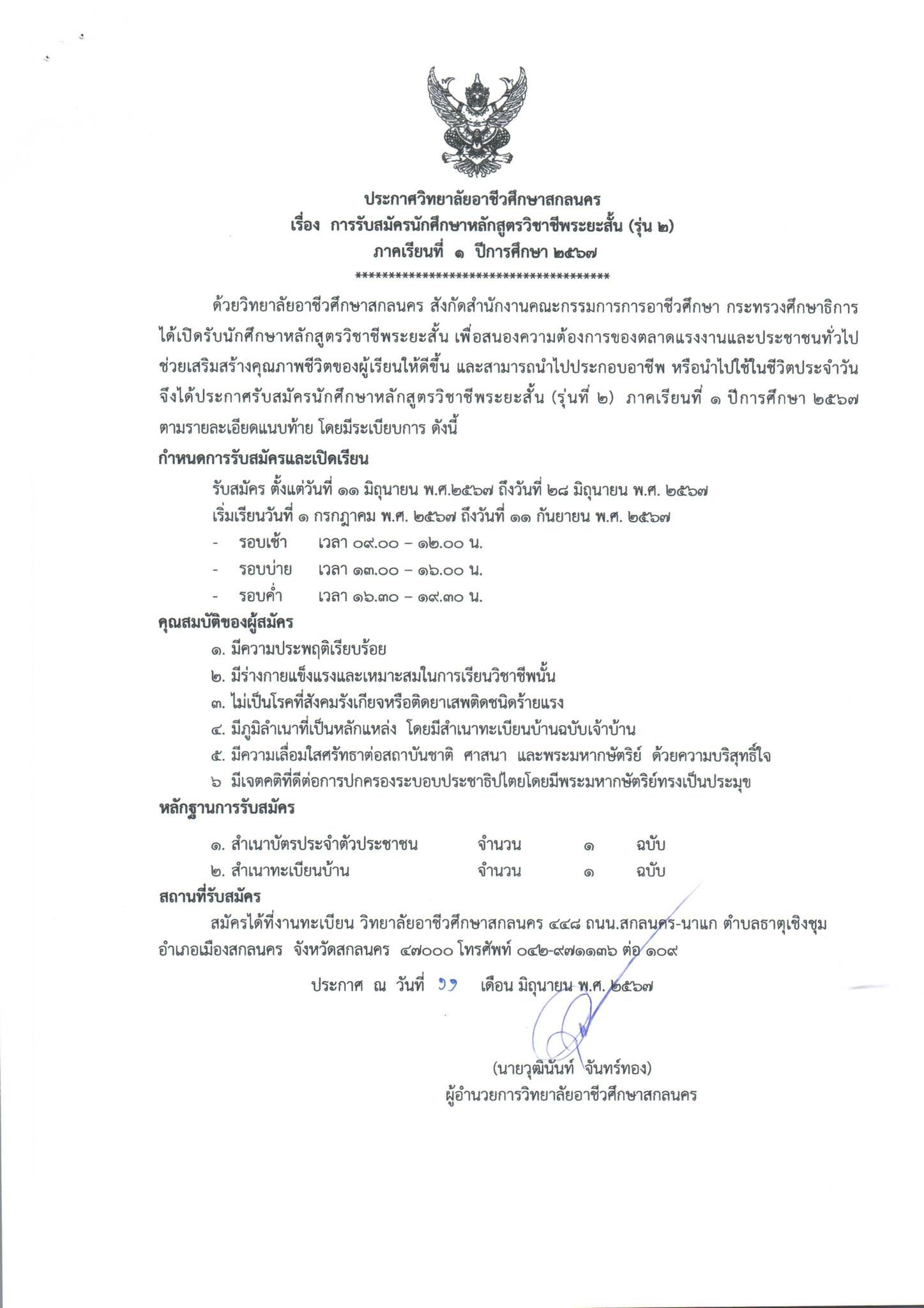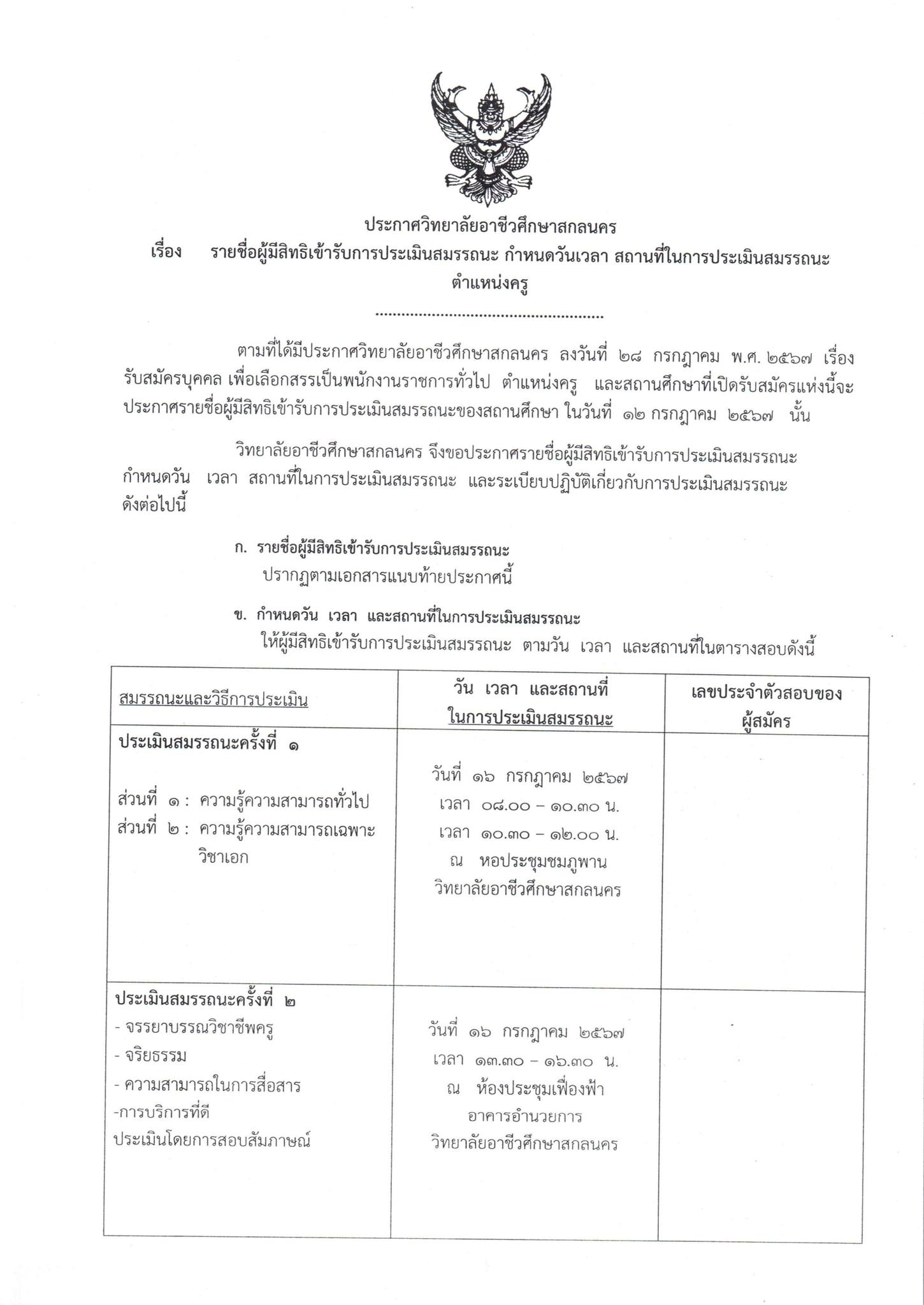 ประกาศวิทยาลัยอาชีวศึกษาสกลนคร เรื่… รายชื่อผู้มีสิทธิเข้ารับการประเมินสมรรถนะ ตำแหน่งครู