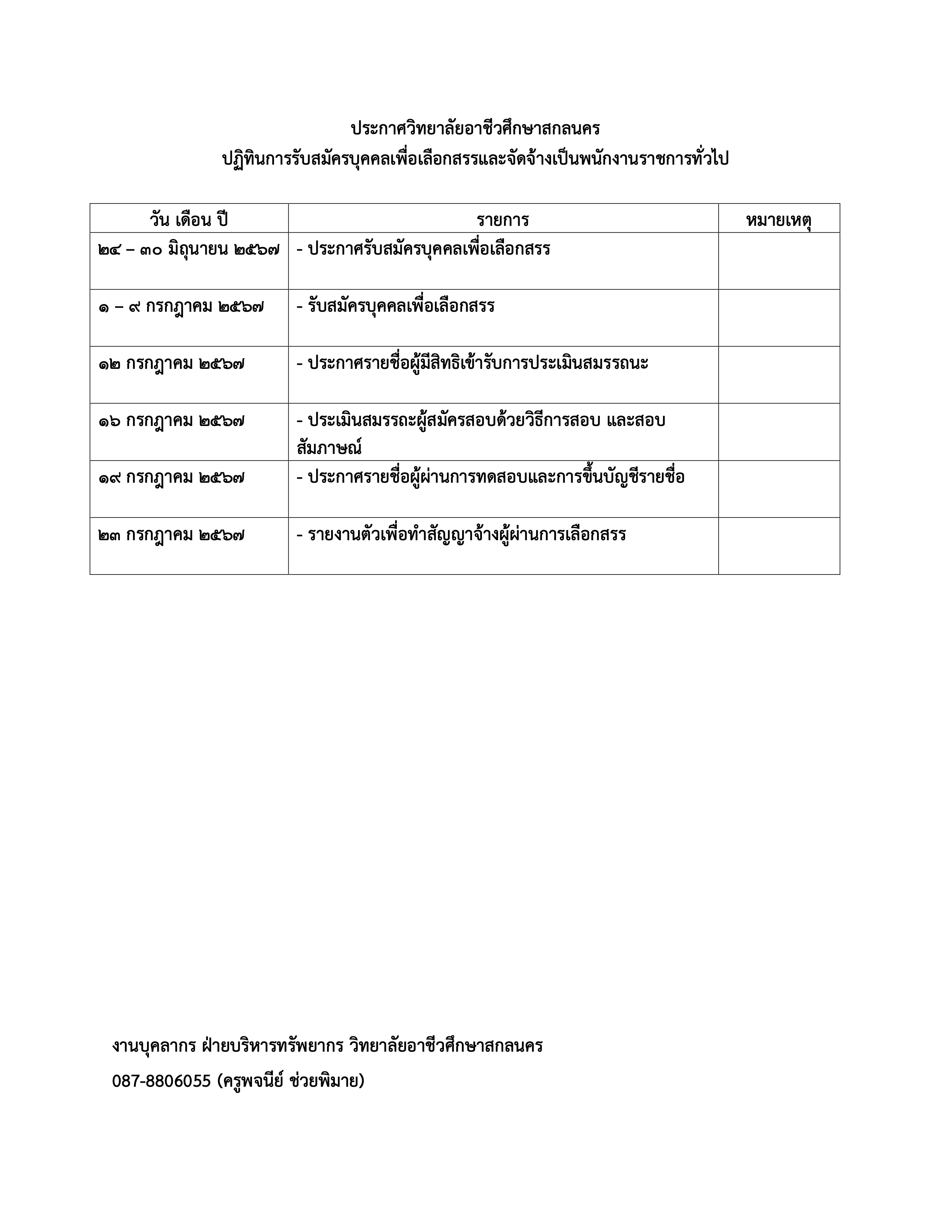 ประกาศวิทยาลัยอาชีวศึกษาสกลนคร ปฏิท… รับสมัครบุคคลเพื่อเลือกสรรและจัดจ้างเป็นพนักงานราชการทั่วไป (4ตำแหน่ง)