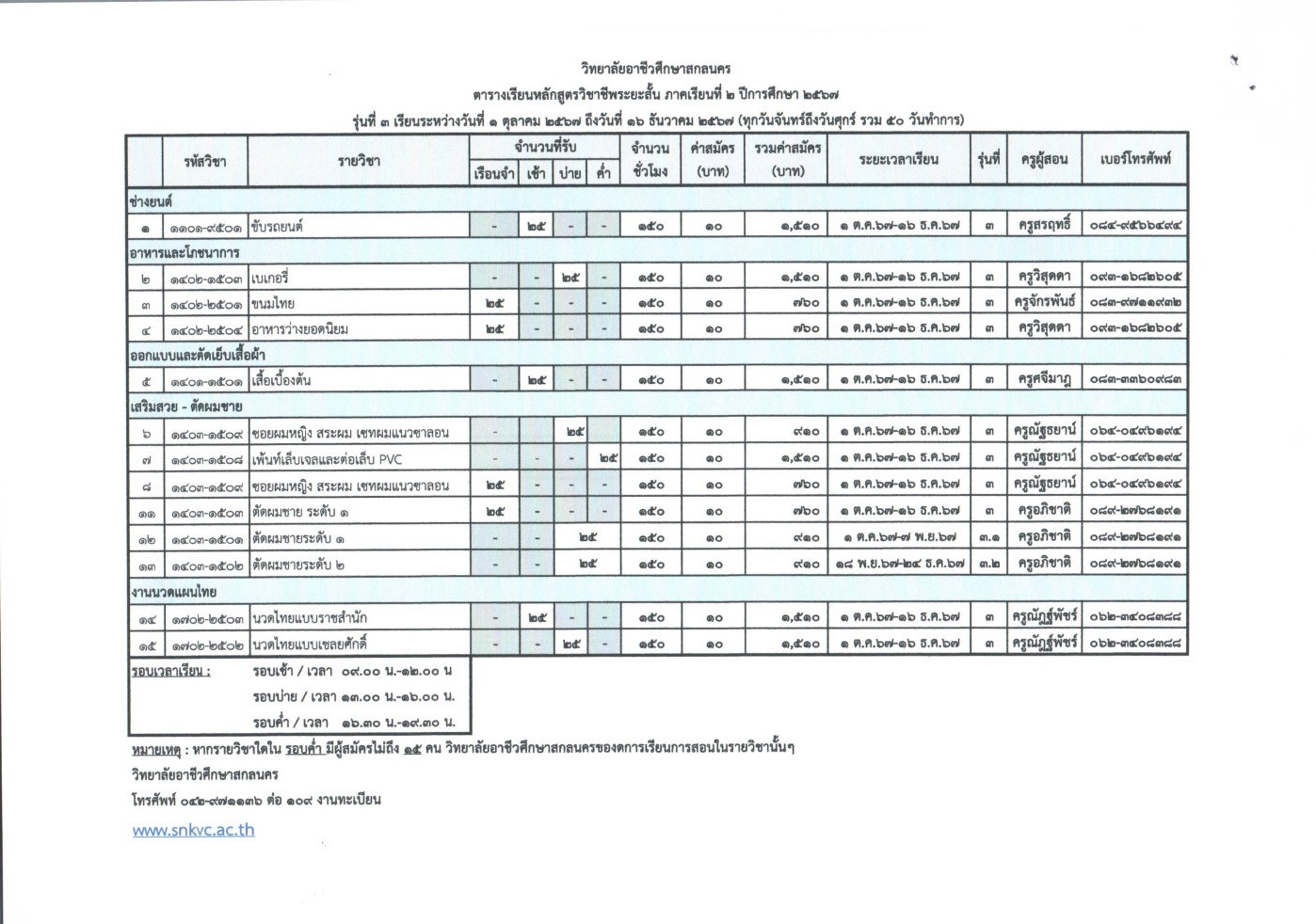 ประกาศวิทยาลัยอาชีวศึกษาสกลนครเรื่อ… บัญชีรายชื่อผู้ผ่านการเลือกสรรเพื่อจัดจ้างเป็นพนักงานราชการ (ครู)